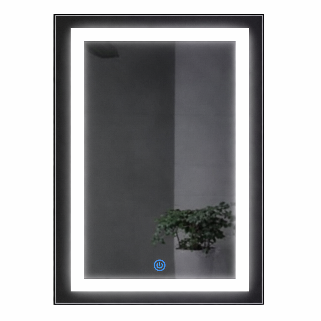 L'accensione è semplice e comoda per mezzo di un pulsante TOUCH che si retroillumina di Blu quando la lampada è accesa ed è situato nella parte bassa e centrale dello specchio (se installato in verticale).
