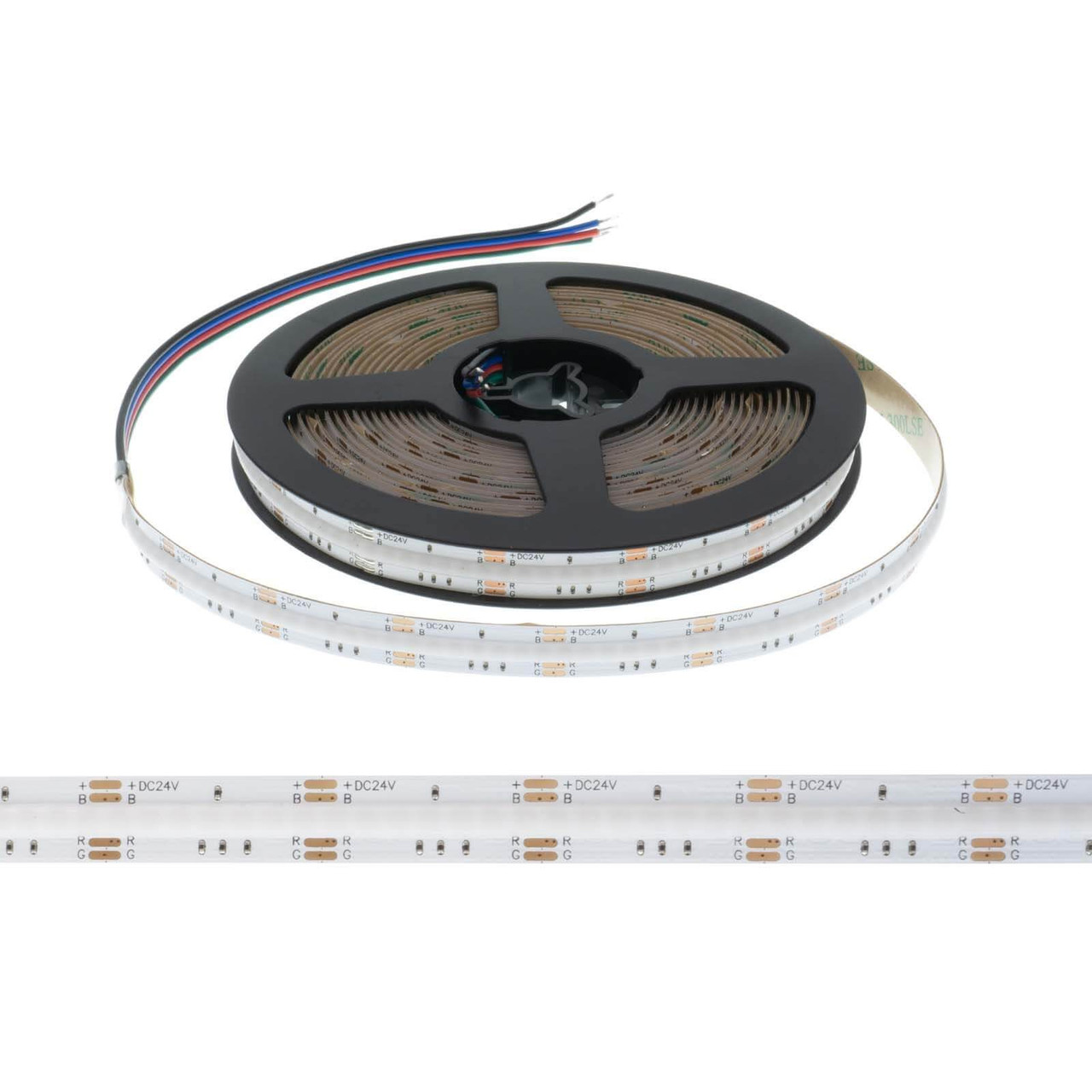 La striscia LED COB RGB 24V serie Professional è la soluzione ideale per chi cerca un’illuminazione uniforme, continua e altamente decorativa.