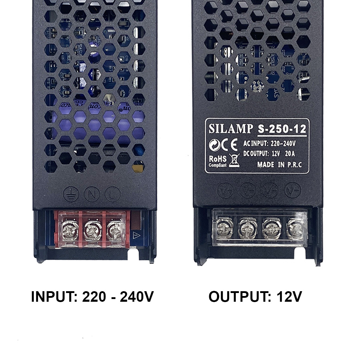 Il trasformatore a 12V 250W 20.8A è realizzato per collegare i sistemi di illuminazione, che non possono essere utilizzati con una connessione diretta alla corrente elettrica. Il suo funzionamento principale, è convertire  la tensione degli apparrecchi a corrente 220V,  alla bassa tensione 12V corrente continua.