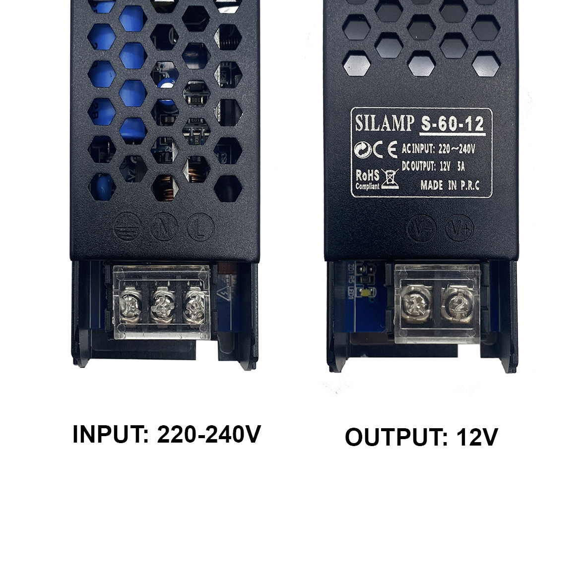 Trasformatore 12V DC 60W 5A IP20 alimentatore per lampade strisce led 12V J1-60W