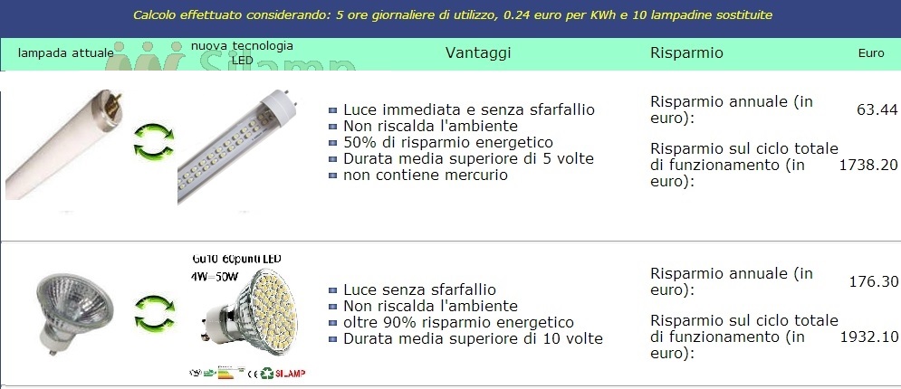 500w (rispetto a un’alogena)