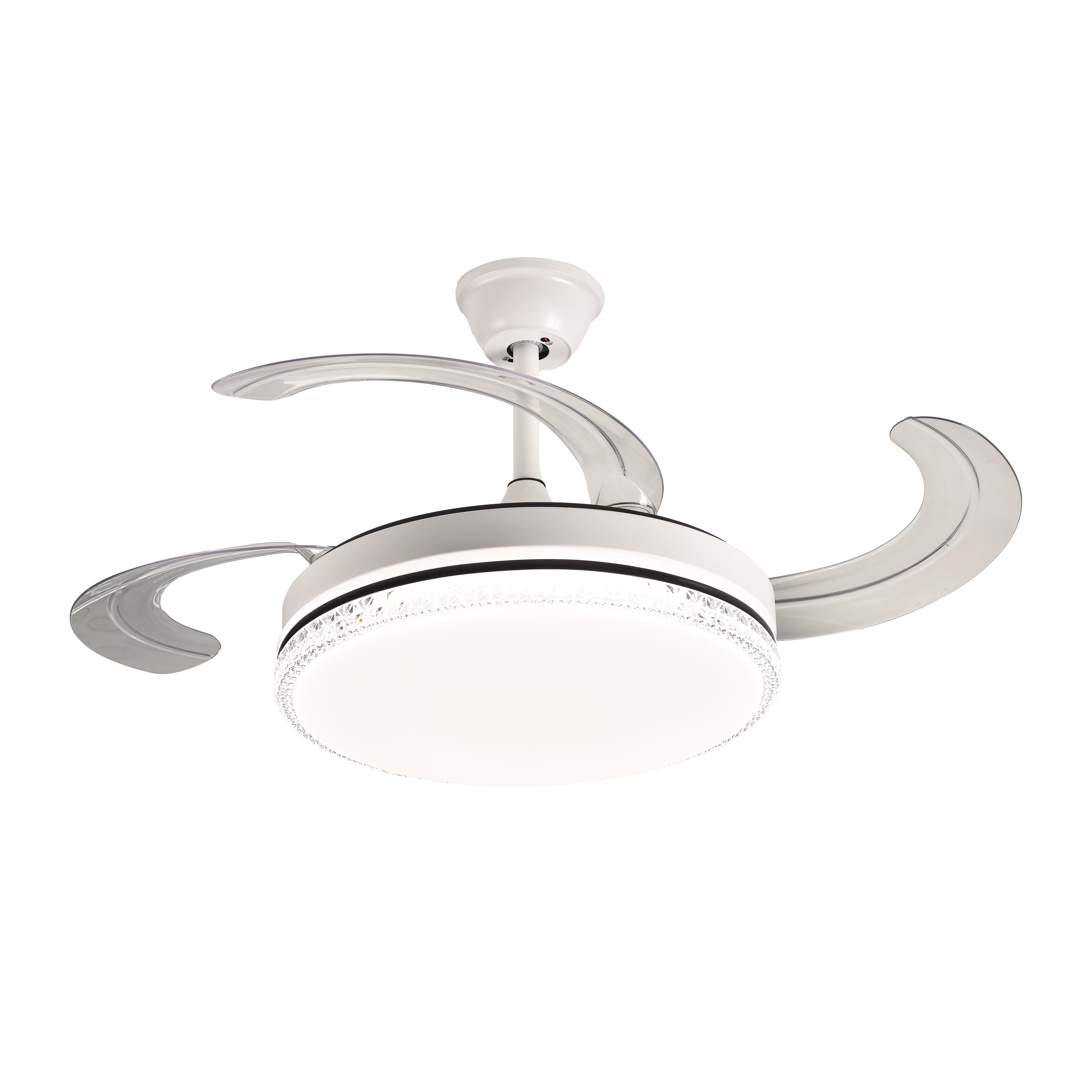 Una volta spento il ventilatore, le pale si ritirano e rimangono nascosti sopra il motore.